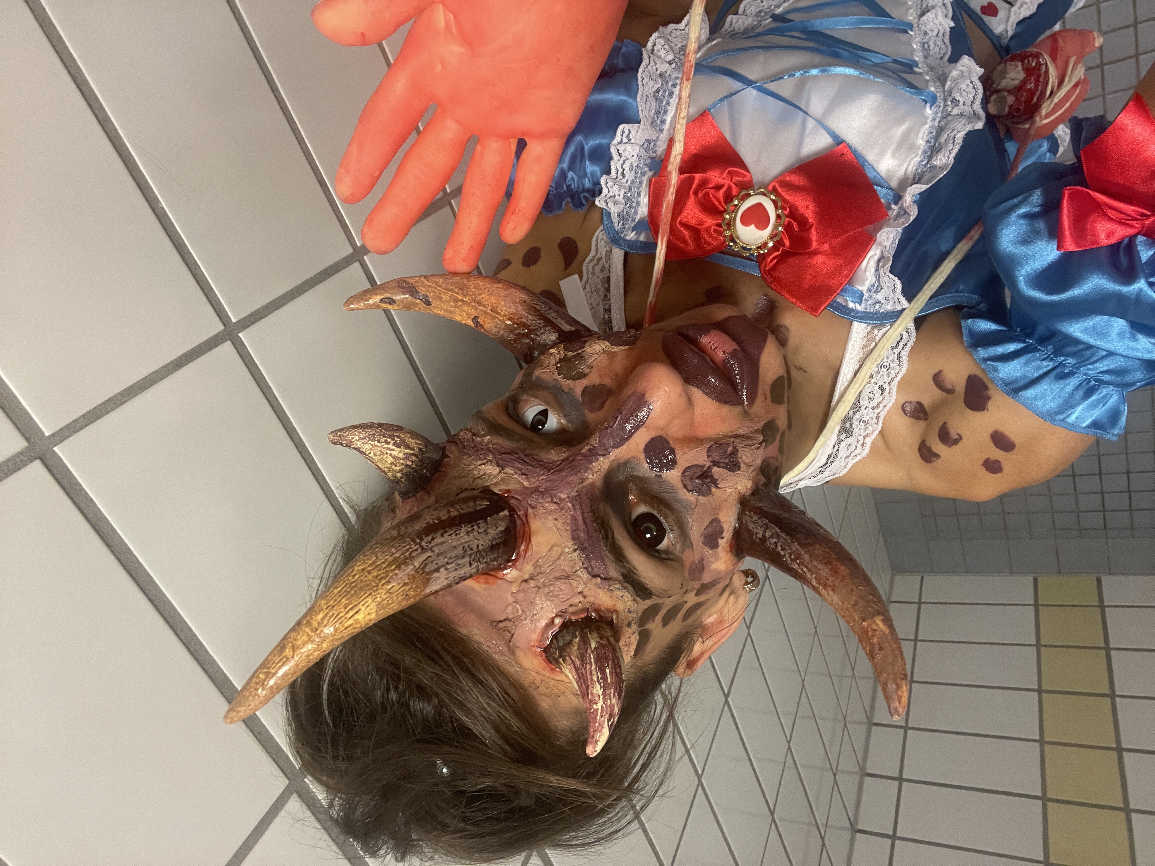 Applikationen, Kunstblut und realistisch wirkenden Wunden.